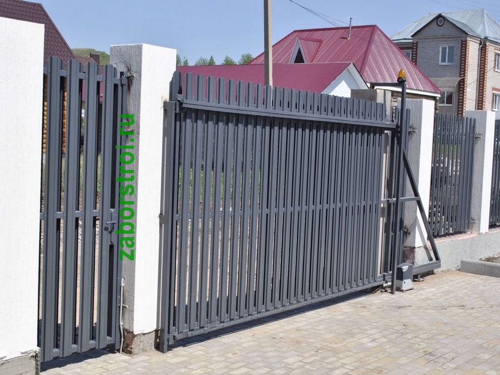 Откатные ворота из евроштакетника пример 1