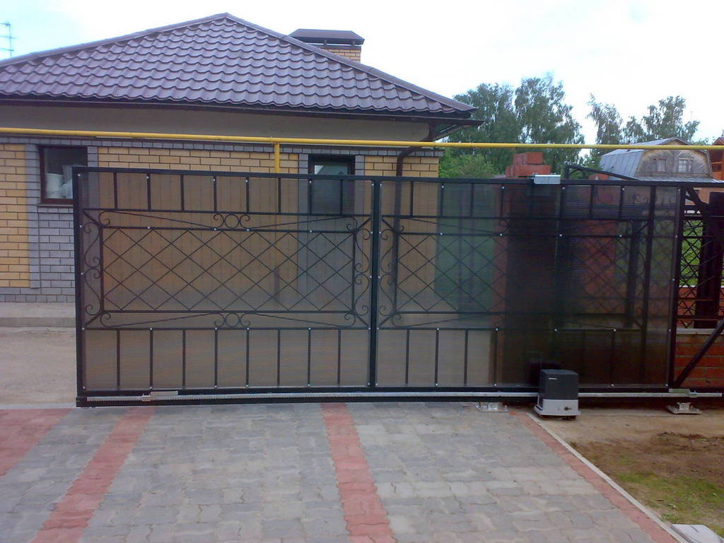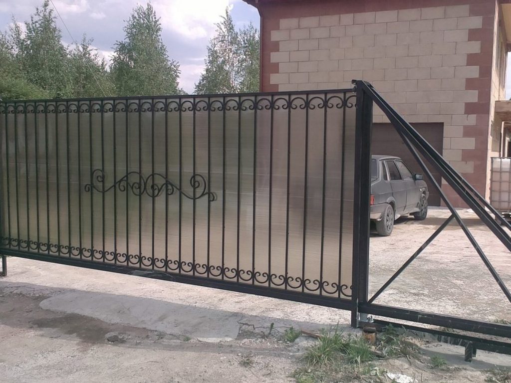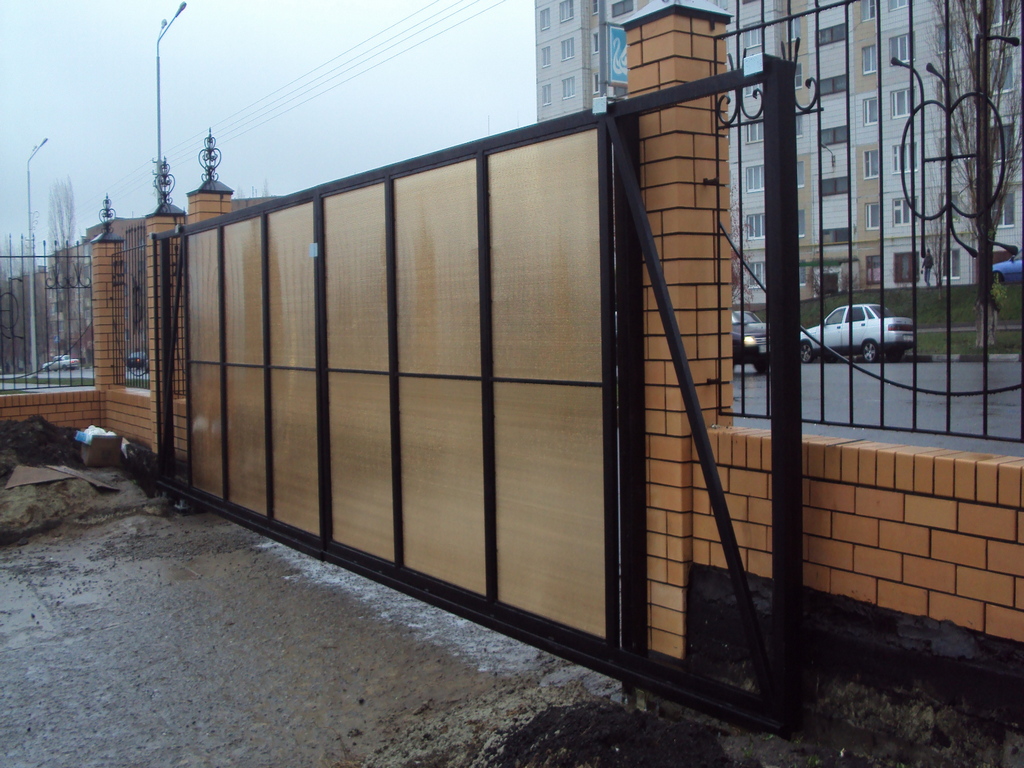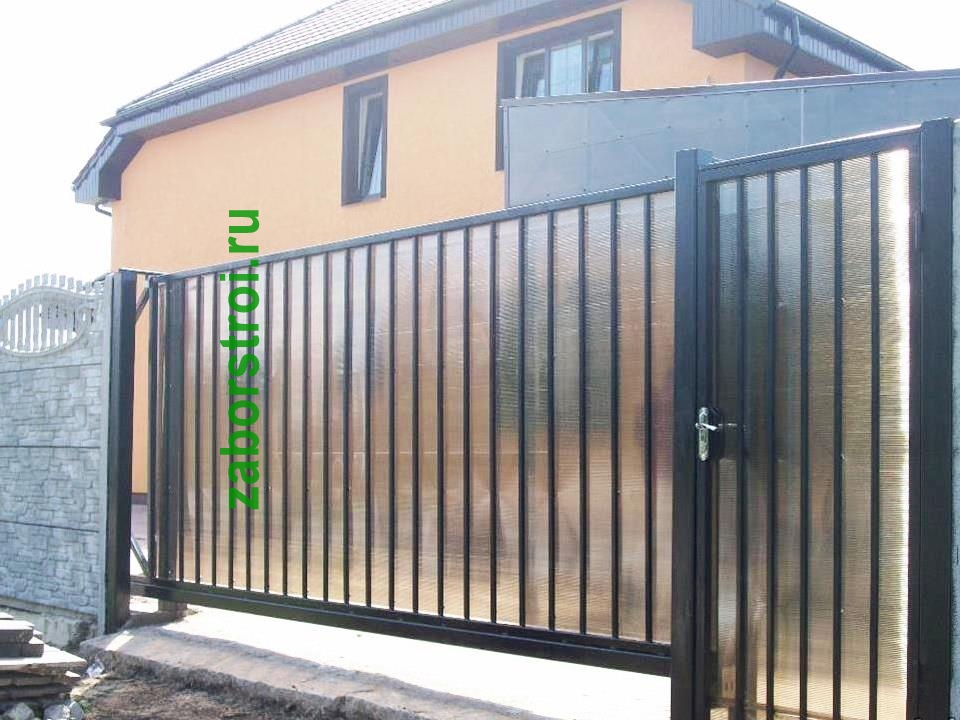 Откатные ворота из поликарбоната пример 10