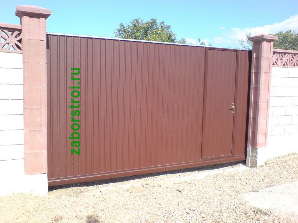 Откатные ворота с калиткой пример 10
