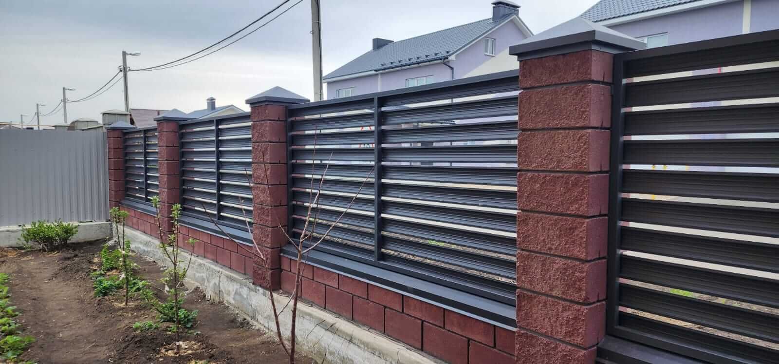 Ленточный с кирпичными столбами